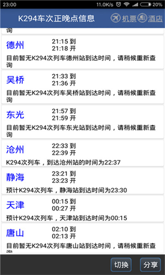 如果遇到一些车站施工、临时封站、停开计划,这款路路通列车查询软件也能及时自动进行处理,为你给出多种出行方案选择。此外,它还提供了智能导航、站名解读、站点百科等扩展功能,丰富各位出行者的旅途体验,有兴趣的朋友不妨前来本站下载体验一番吧!2、时刻表车次后增加'-'的说明列车在指定的日期还没有开行。 时刻表车次后增加'+'的说明列车在指定的日期列车已过期。