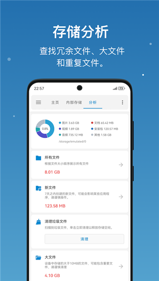 3、帮助用户了解手机存储空间的使用情况,清理无用的文件,释放宝贵的空间
