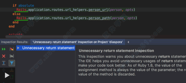 遵循社区最佳实践,通过代码检查,验证您的代码可能出现的错误类型,并提供快速修复选项。然而,安全自动化重构帮助清洁你的代码更容易维护和保持。Rails感知重构帮助您执行项目范围的变化:例如重命名控制器也将帮手,观点和试验。