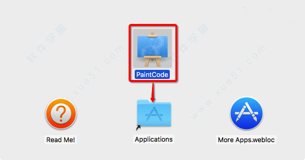 1、打开dmg镜像文件,将“paintcode”拖入应用程序中进行安装;