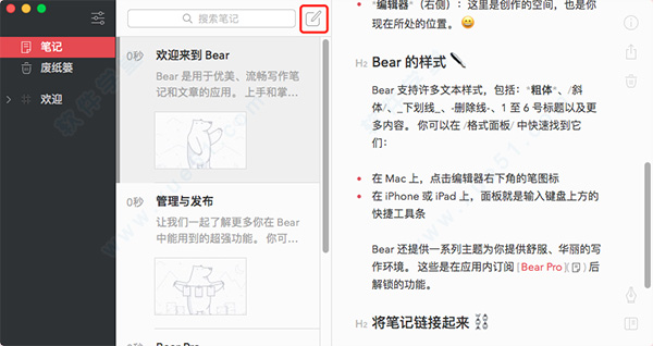 注:下载包中有bear for mac 中文破解版安装包以及软件安装必读文件,安装包在未使用时请不要轻易删除和更改文件类型。