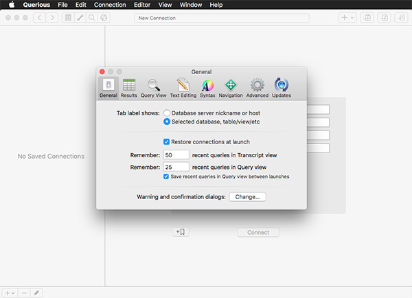 querious mac 破解版是旨在帮助用户更好的进行数据库管理上操作,免除软件功能和使用期限上的限制,另外,软件拥有访问服务器错误日志和慢查询日志的强大功能,极大的方便了用户在常规操作后的日志查看和自定义查询。本站提供该软件mac破解版下载,有需要的用户可以在本站下载!