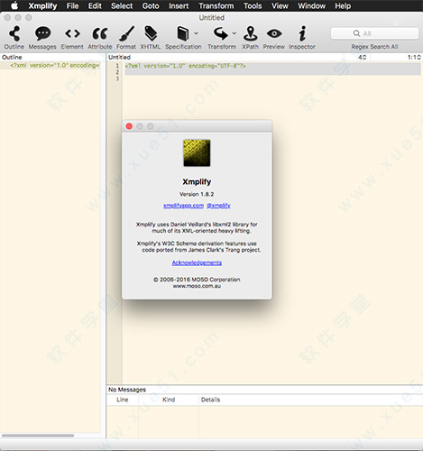 xmplify 破解版是旨在帮助用户更好的进行软件功能上的使用,免除软件使用期限上的限制,另外,软件还提供了一个大纲视图,用以显示文档结构,并自动保持轮廓更新,以反映最新的编辑效果,允许您快速跳转到需要进行编辑修改的代码位置,并定于正在使用的元素,自动导出你的模式文档,深受广大用户的喜爱与青睐。本站提供mac 破解版下载,有需要的用户可以在本站下载!