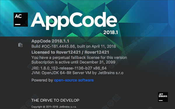 6、进入软件设置向导界面,我们点击“Create New Project”新建项目,完成后我们点击macos菜单栏中的软件图标,在弹出的下拉框中选择“About AppCode”查看软件相关版本信息,出现下图代表已经成功注册激活使用;