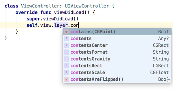 正常我们输入状态下appcode就会有代码提示,用此快捷键可以强制调出代码提示