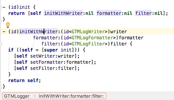 7、面包屑导航跟踪你在Objective-C/C/ c++代码中的位置和面包屑-在编辑器底部的小标记帮助你导航你的代码。