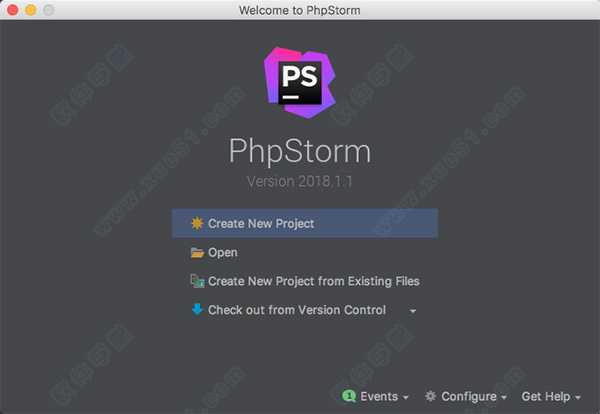 6、进入软件设置向导界面,我们点击“Create New Project”新建项目,完成后我们点击macos菜单栏中的软件图标,在弹出的下拉框中选择“About PhpStorm”查看软件相关版本信息,出现下图代表已经成功注册激活使用;