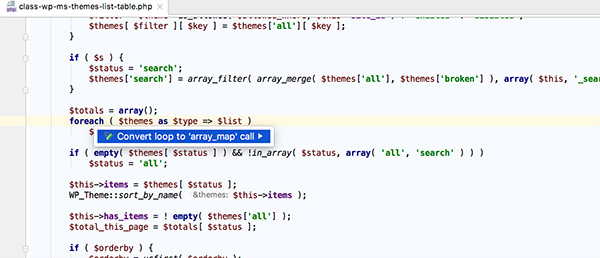 2、将代码重构为函数式为了帮助您轻松地将代码迁移到命令式和函数式编码风格之间,PhpStorm 2018.1引入了一些新的检查和快速修复。它们将把循环转换成array_map、array_filter和array_fill函数调用,反之亦然。只执行等效的转换,并且代码的逻辑不会改变。