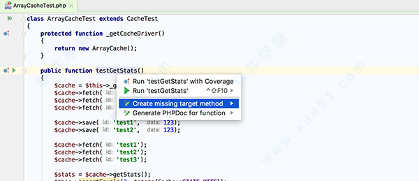 4、创建类的测试随着TDD变得越来越流行,这种情况非常普遍,在这种情况下,测试已经就绪,但是覆盖的类还不存在。为了处理这种情况,PhpStorm 2018.1将帮助您从现有的测试中生成一个类和类方法。PhpStorm还将使用PSR-0/PSR-4结构来生成目标类和它们各自位置的类方法。
