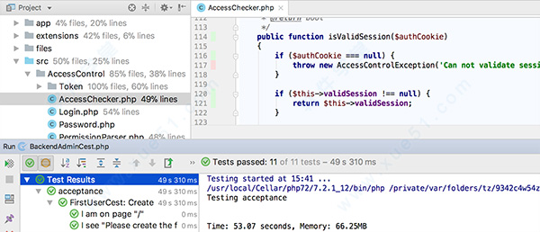 5、Codeception:代码覆盖率我们已经听到了您的请求,以实现代码覆盖率。它是在PhpStorm 2018.1中实现的,与PHPUnit覆盖率完全一样。您将在项目视图和代码编辑器的左沟中看到覆盖率结果:覆盖的代码行将用绿色标记表示,而未覆盖的代码行用红色标记表示。