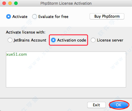 5、运行软件,弹出软件注册激活激活窗口,我们在“Activate license with”栏中选择“Activation code”随意输入激活码即可完成破解激活操作,如图所示: