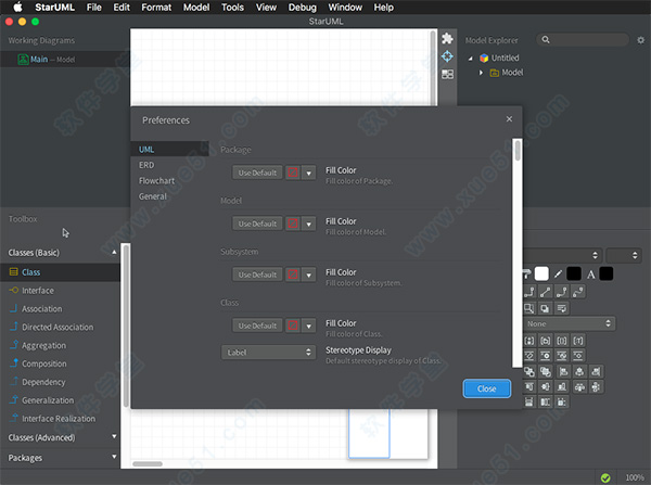 staruml mac是一款专用于uml建模操作的mac版图形可视化绘制工具,它不仅能够用于类图、用例图、序列图、活动图以及通信图等强大的绘制操作,还提供了一个可视化的用户界面,软件支持将制作好的图纸文件导出为JPG、JPEG、BMP、EMF等常用的图片格式,同时软件还拥有读取c++、c#代码生成类图的功能,软件结合了模式和自动生成代码的功能,极大的方便了您更简单的落实设计,完善的解决了用户在uml建模操作中使用体验。