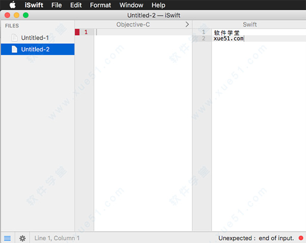 2、如图所示,项目新建完成,我们可以将需要进行转化的Objective-C代码或者Swift代码拖入到对应的输入框中进行转换;