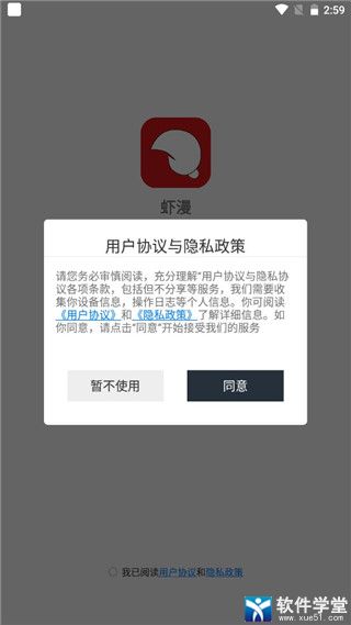 1、首先在软件学堂中下载好虾漫app。
