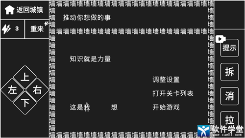 2、游戏中所有项目都用汉字表示。你需要控制自己,打开挑战各种问题的大门。随着关卡的推进,屏幕上的文字越来越丰富;