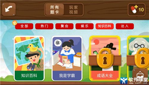 4、Q版萌系画风,制作精良的游戏界面,不同类别的题卡选项逐一展现在眼前。