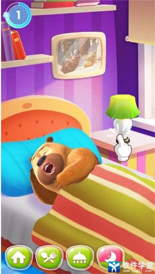2、如果你的小伙伴困了,点击下方的月亮图标,然后关掉床头柜上的台灯,它就会睡了,如果把灯打开,它就会醒了。