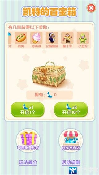 6、如果你有月亮石,还可以开启百宝箱,可以有机会获得公仔、食物、金币等。