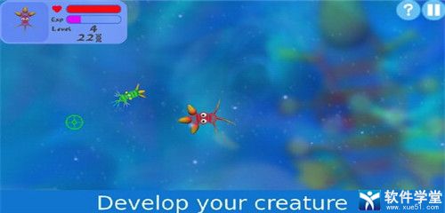 2、好玩有趣的休闲娱乐游戏,适者生存的经典道理,自由穿梭在神奇海域,升级物种器官。