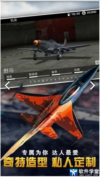 2、它是节奏快的空战游戏,你将接纳全部的挑战,现有8大副本供游戏玩家挑战,6架不一样火力点的人体供游戏玩家挑选,并能开启各种造就。