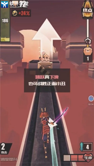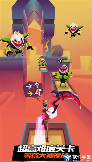 3、想与小丑正面交锋?向上跳跃再向下滑动即可战胜正面小丑。