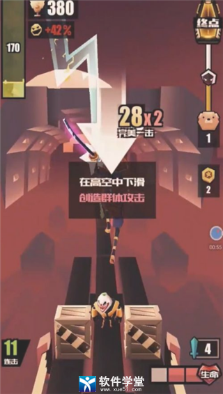 4、遇到空中飞行怪怎么办?不要急,上滑+侧滑的组合方式即可完美杀敌,在高空中下滑也可创造群体攻击。
