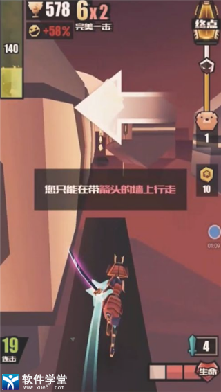 5、前方没有路啦,这时可以左右滑动在带有箭头的墙上行走,哈哈哈有没有飞檐走壁的感觉呢。