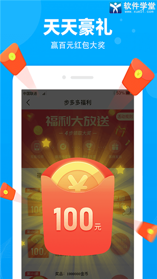 1、步多多每天步行3000步,即可获得奖励。