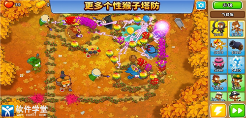 2、获取超多技能点数,增强自身能量,灵活运用各种猴子塔设定防线。