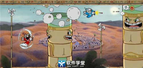 1、玩家可以选择扮演茶杯头Cuphead或者Mugman,可以选择单人模式或者合作完成。