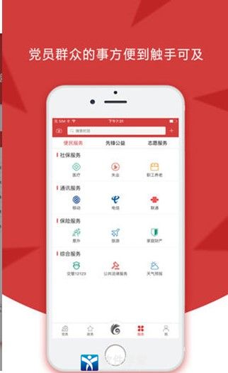 1、党建服务项目多,有短信群发、互动交流、党费缴纳、文件学习等功能模块;