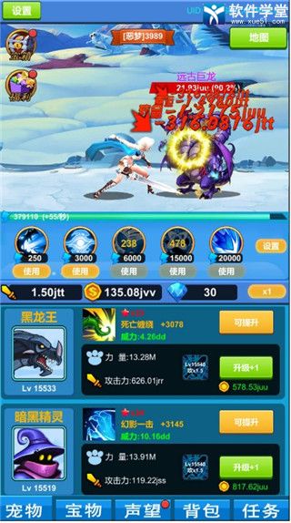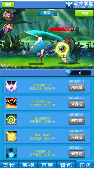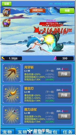 这里有个技巧,当你宝物和装备提升瓶颈之后,关卡推到推不动,这时候开威望宝箱。这里威望宝箱最多叠加5个,这时候开3个,然后升级威望,然后再开一个威望箱子,获取金币,给宠物提升一波,然后再下线,有空玩就闹钟3小时上线,提升宠物,推关,推不动再开威望箱子升级,重复步骤。