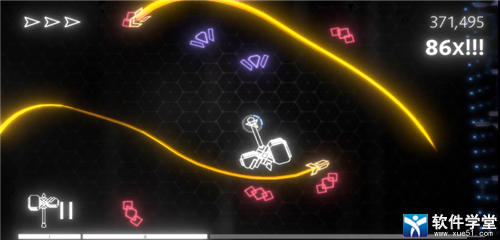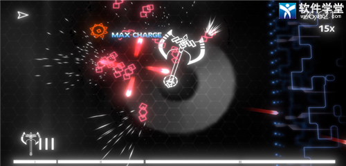 3、游戏采用了双摇杆操作模式,这里你只需要闪转腾挪,在几十种不同的敌人类型当中任意的砍杀、碾压,感受爆炸的指尖操作,最终杀出敌阵即可获得高分。