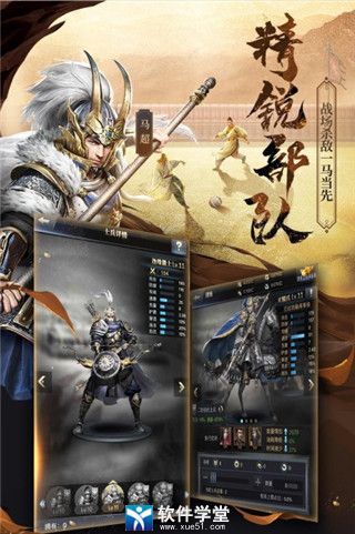 SSS级美术水准,三国战场高度还原,沉浸式体验!百名武将画质精良,细腻逼真,各具特色,犹如与您面对面纵论天下;虎豹骑、南蛮象兵、西凉铁骑等恢弘军团在大地图穿梭自如,威严霸气!