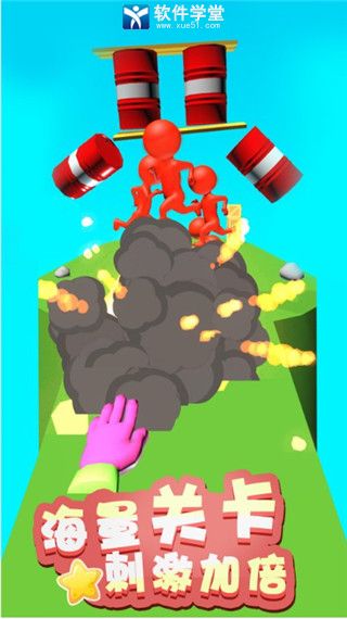 4、各种轻松关卡等着你去体验,你也可以用爆炸桶把敌人全部炸飞。