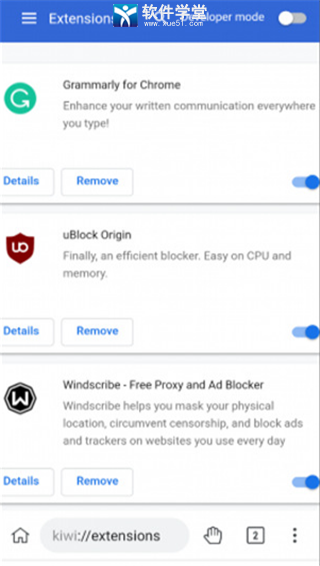 手机浏览器,它的英文名字叫做kiwi browser,该软件是基于谷歌Chromium内核开发,这使得它成为目前市场上唯一一款可以支持Chrome扩展程序的手机浏览器,这意味着用户们可以在手机上使用油猴插件!这几意味着我们可以自己定义一个多功能的浏览器。这款浏览器还自带广告屏蔽功能,现在的很多网站都有广告弹窗,一下没关好还可能点到广告无法关闭,有了这款软件用户就可以安心的访问网站了,浏览器甚至可以屏蔽并跳过一些视频网站的开场广告可以说非常的强大,还能有效的阻止追踪,防止他人查看你的隐私信息。本次为大家带来的是