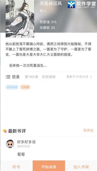2、全面的小说类型:玄幻、都市、言情、武侠、科幻、军事、职场励志,应有尽有。