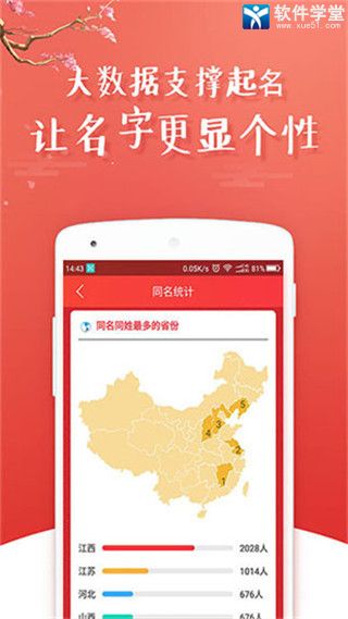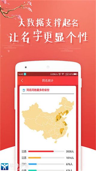 - 一键查自己名字在全国范围的重复率,一目了然。