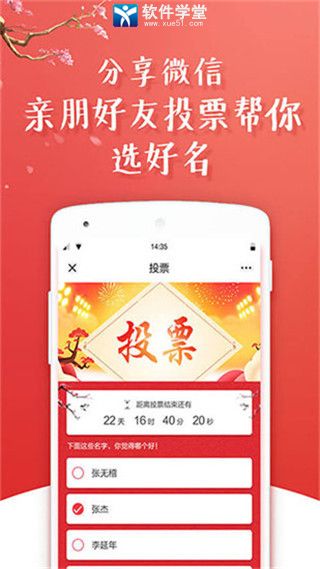 - 遇见不知道用那个名字的时候一键分享好友,让他们帮忙选名。