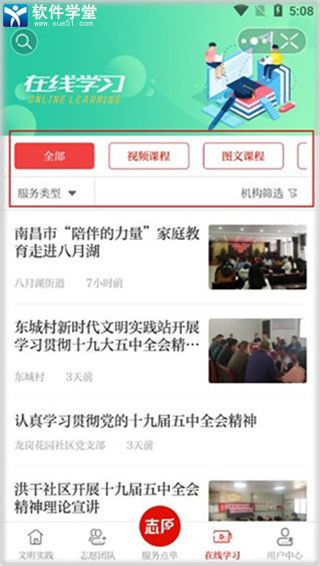 5、右划至在线学习,在这里可以学习一些政治知识。