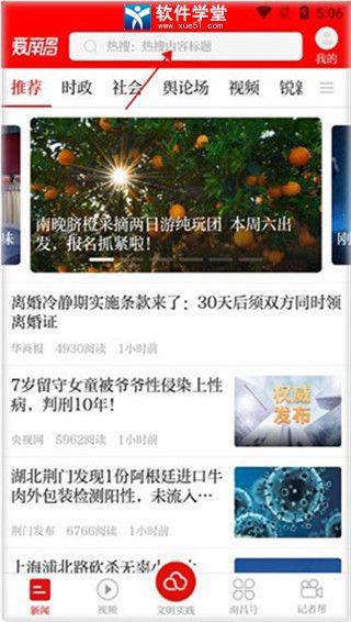 1、在本站下载好软件后打开,进入首页可以在搜索款搜索自己喜欢的新闻资讯。
