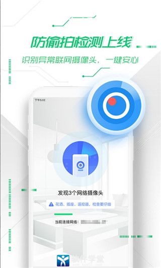4、一键检测,检查在当前wifi下存在的可以联网摄像头,保护用户隐私。