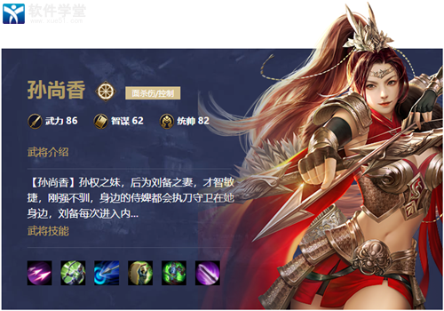 4、【孙尚香】孙权之妹,后为刘备之妻,才智敏捷,刚强不驯,身边的侍婢都会执刀守卫在她身边,刘备每次进入内房时都会感到害怕;