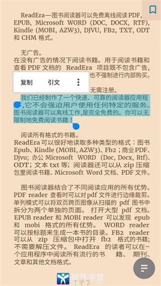 3、支持进行内容复制、引文等操作,让用户能够更好地管理缓存到本地的图书。