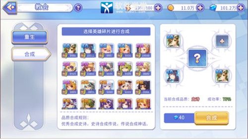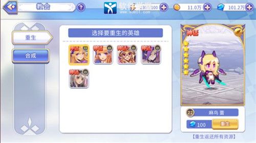 2、教会:入口在游戏主界面头像下方,里面只有两个功能,这两个功能很简单易懂,一个是合成,一个是重生。