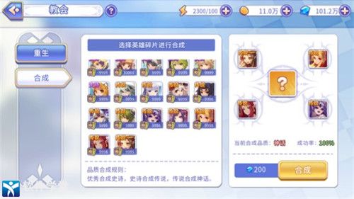(2)合成:在游戏中,多余的低级碎片和用此功能合成高级的碎片,合成的成功率随消耗的碎片数量增加,最高能达到100%。如果有多余不需要的低级碎片,不妨多利用这个功能,将其合成为高级的碎片