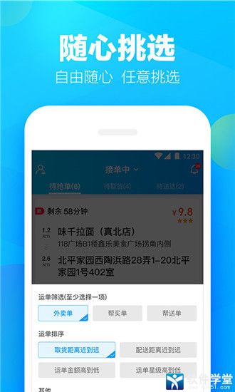 自由抢单或选择驻店,驻店后仍可参与抢单;