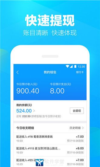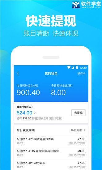 赚钱的应用软件。各位大学生或者是当前还没有工作的人们想要赚钱可以选择下载这款软件,在这里你可以给各种抢单或者等待着派送,只要你时间足够、熟悉路线就可以获得许多的报酬。而且软件会对接到饿了么平台,大平台,派单订单不用愁,而且会给各位兼职骑手们配送最近的订单哦。兼职配送,时间灵活,而且接单自由,赚钱轻松,除了配餐之外,还有这鲜花、蛋糕等配送,或者是同城配送还能赚的更多哦!而且所有的收入都是按单结算,不用担心赚的钱取不出来,每一笔都可以随时随地提现,而且提现到账的时间超级快,有准备好的小伙伴就可以下载