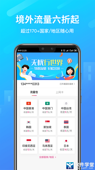 无忧行是一款十分好用的出境通讯服务软件,该软件由中国移动官方推出,使用这款软件之后用户们就可以畅享免费与境外用户进行语音通话。不论是中国大陆还是中国港澳台地区,还是新加坡、泰国、韩国等多个区域都可以实现跨境免费通话。让你出境旅游之后上网也无需换卡或者是携带其他设备,不需要开通漫游数据也可以使用境外流量包啦!而且还可以获取各种境外旅行攻略,超值的景点门票可以直接线上购买。资费超低一天只需要六块钱,上网用的也是本地流量,速度超快不限速哦!软件中还有各种语言