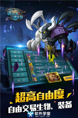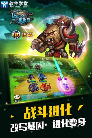 达尔文进化岛是由经典同名RPG游戏原班团队制作的一款集进化、养成、对抗、趣味、探索为一体的颠覆性生物进化回合制手游,游戏采用非常开放自由的卡牌养成模式,玩家将从基因、细胞开始养成物种,在进化的过程中,可以对物种进行随意组合。玩家无需按照规则进行组合,因为游戏中所有的融合均无规律可言,没有规则,就能够让玩家充分享受卡牌游戏的魅力。在游戏中,玩家可以收集不同的基因,通过不断组合,从而进化成为各种神奇的生物(或者是奇怪的生物?),不同的物种还会携带不同种神秘力量!游戏具有超高的自由度,去除了抽卡系统,所有的卡牌随机生成,生物的技能和天赋也都由玩家一手打造。所有的物种在这里都是适者生存,因此你想要活下来就需要不断的努力。但是尽管如此,这里还是会有物种直接的相克的,所以你一定要取长补短,使得自己可以向更加高级的生命进行净化哦,活不活下来就看你自己了!